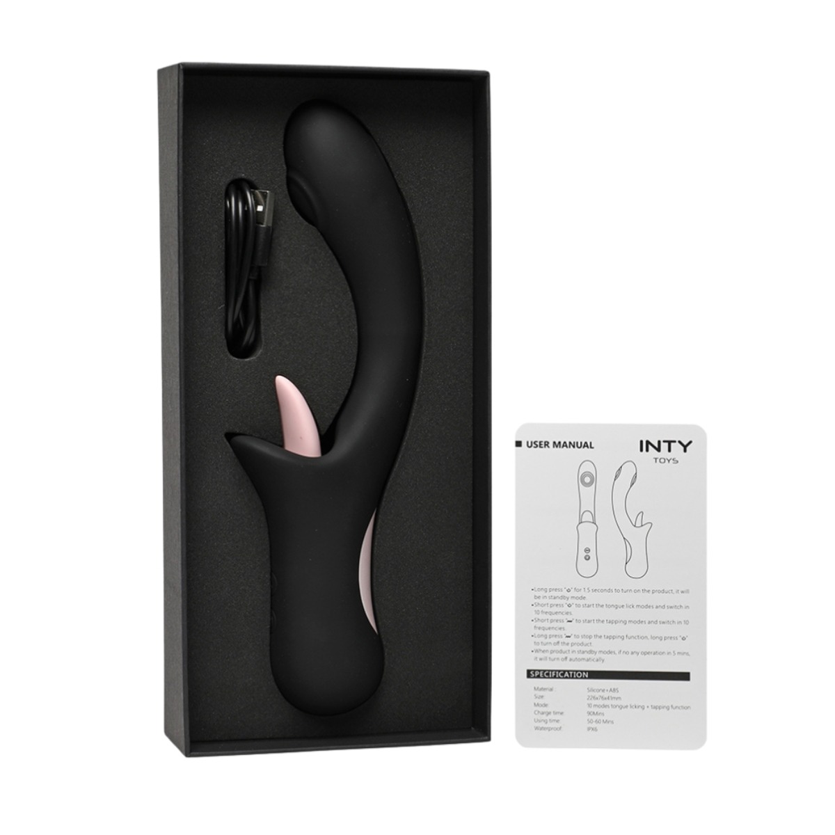 Licking and Tapping Vibrator Head double Tappingfunction + tongue licking vibration Ultra Strong vibrations Made of skin friendly silicone Powered by USB charging Waterproof IPX 6