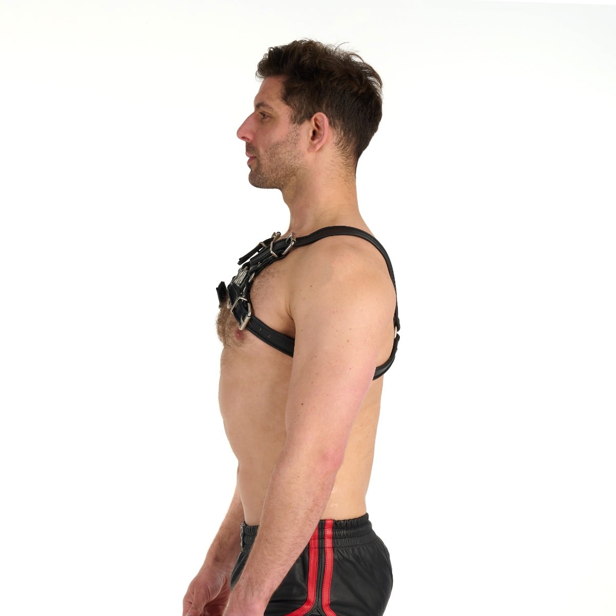 The new menswear and accessory range from Prowler Red is going to get some attention. The Bull harness is the perfect accessory to indulge some master/slave role play with it’s D-rings at the front breastplate and at the back. Whether upright or on all fours the wearer can be leashed or bound as desired. Featuring adjustable metal buckle straps and made from quality leather. This harness will hold up to all you can throw at it and look exceptional while doing so. Available in black grey red and white.