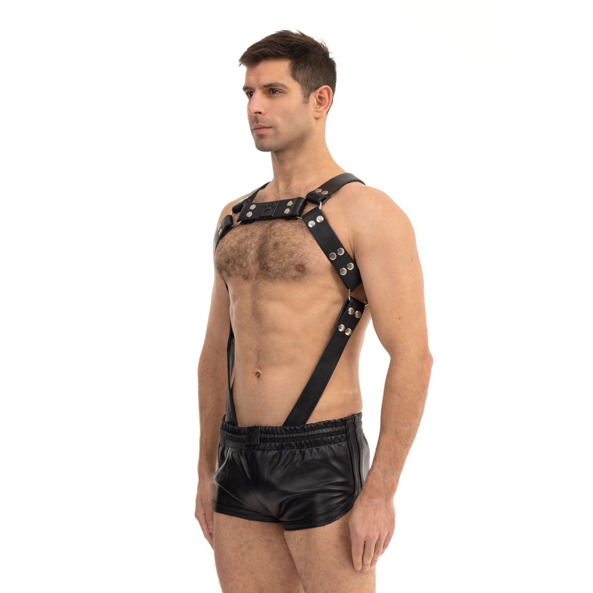 Our Prowler RED Premium Butch leather harness is a fitted piece of fetish wear for men that really draws the eye to your body for a bold statement style. This kinky accessory is finished with press stud detail and the straps are adjustable. It shows off your body and combines a kinky style with comfort. The high quality leather of this harness for men ensures that it shapes to your body with every wear. It comes in sizes Small Medium Large and Xlarge.