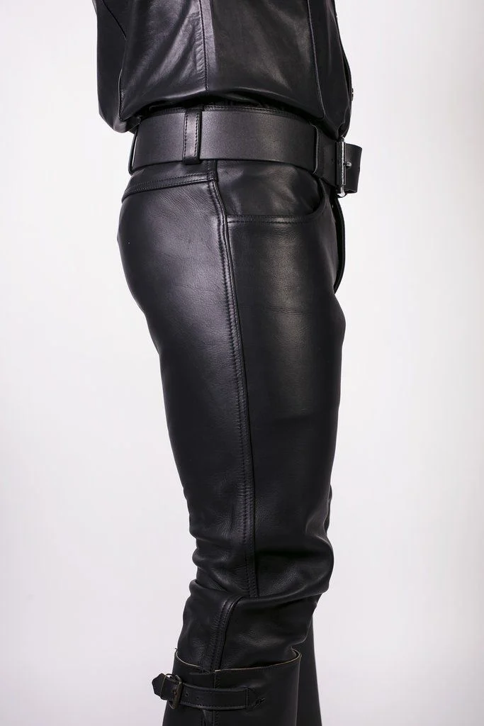 These are the staple leather jeans. A simple 501 cut in amazing soft leather.Two deep pockets on the front a double snap button to keep them secure and a zip fly to avoid any button mishaps.We left the pockets off the back of these jeans so they can really show off how well they will fit around your ass.We make our jeans higher waisted to stop that feeling of them constantly falling down but we still recommend wearing a belt.All our leather jeans are finished to a 36″ leg but alterations to the length can be made free of charge in our store.