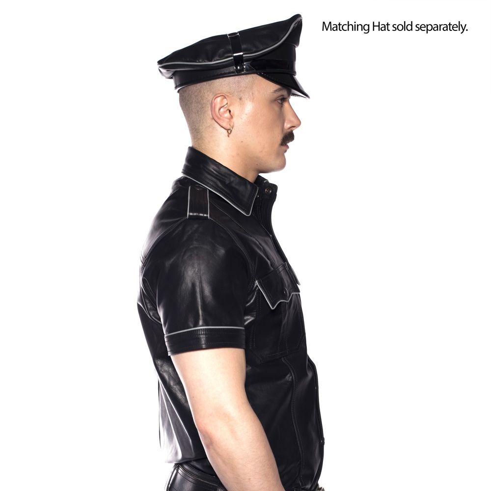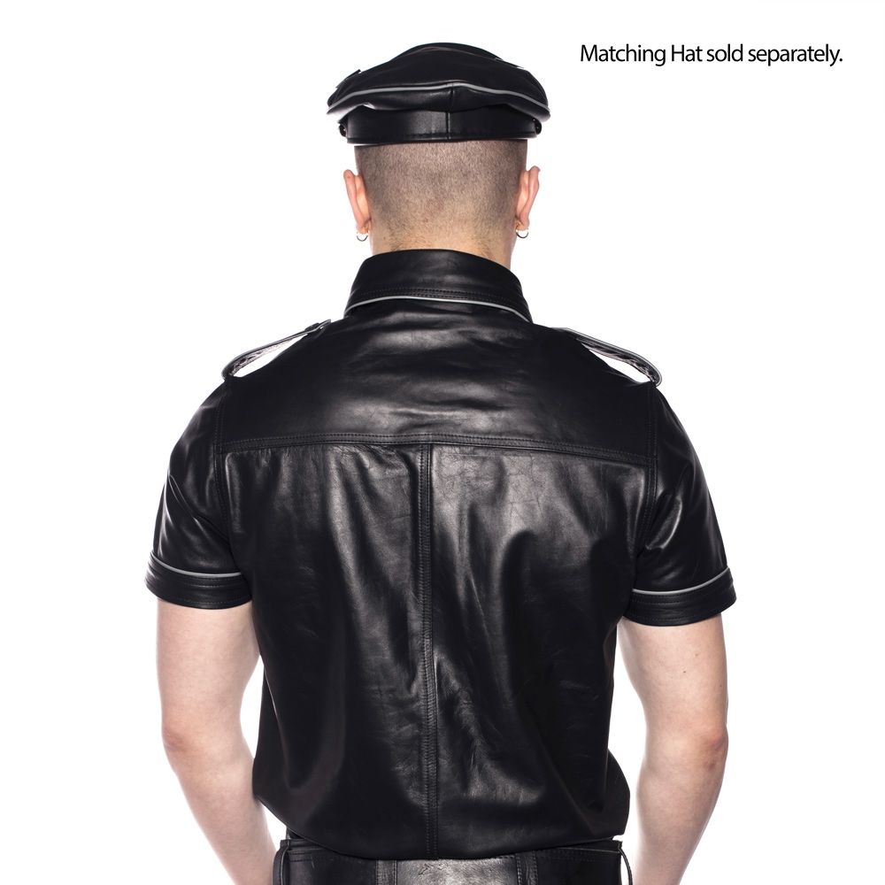 The Prowler Red range leather police shirt is a sharply tailored garment made from quality leather. All black or available in black with grey or red piping details.Features:- Classic Fit- Police Style Breast Pockets and Shoulder Epaulettes- Press Stud fasteners- 100% LeatherSizes:SMALL: CHEST 38-40 inch / 96-102 cm COLLAR 17 inch / 43 cmMEDIUM: CHEST 40-42 inch / 102-108 cm COLLAR 17.5 inch / 44.5 cmLARGE: CHEST 42-44 inch /108-114 cm COLLAR 18 inch / 45.75 cmXLARGE: CHEST 44-46 inch / 114-120 cm COLLAR 18.5 inch / 47 cmXXL: CHEST 46-48 inch / 120-126 cm COLLAR 19 inch / 48.25 cm