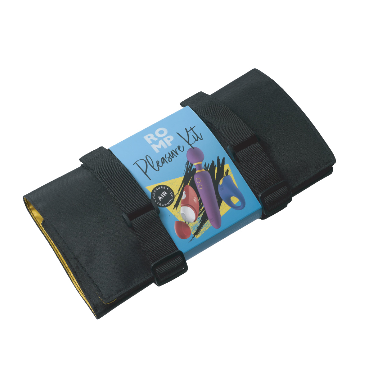 ROMP Pleasure Kit is a one-stop pleasure shop three versatile vibrators for the raunchiest most unbridled fun a couple can have together. This Pleasure Kit contains ROMP Flip a powerful wand massager; ROMP Juke the sensual vibrating couples ring; and ROMP Free a revolutionary Pleasure Air Technology clitoral stimulator. Thanks to the durable roll-bag ROMP Pleasure Kit is at your side for whatever the journey life throws at you.