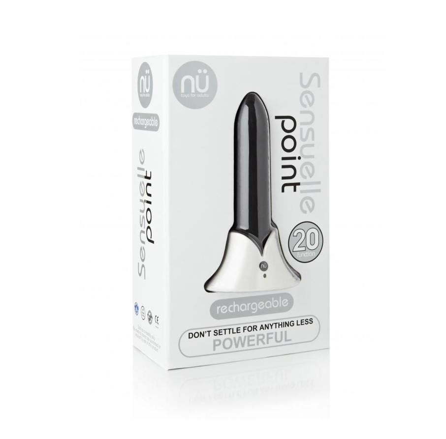 SENSUELLE POINT 20 FUNCTION – BLACKMeet the Point the NU generation of bullet vibrators. Dont let its innocent looks fool you this is no ordinary bullet.Hidden beneath its silky smooth twice-dipped silicone exterior youll find the heart soul and brains that make The Point so special. Lets start with intuitive controls that put you in command of 20 uniquely satisfying vibration patterns. Then theres the long-lasting rechargeable battery that powers the star of the show: Massive. Vibration. Generation. Our proprietary motor design delivers MIND BLOWING vibrations uniformly across the full surface of the toy. This means youll enjoy The Points sensational stimulation in any position.Of course The Point is 100% body safe 100% waterproof and backed by our comprehensive 1-year warranty. Includes a sturdy charging stand and USB cable.Features:Mind Blowing Power!20 Vibration PatternsVariable Speed100% Body Safe Silicone100% WaterproofRechargeableIncludes Charging Stand1-Year Comprehensive WarrantyTechnical Specifications:Weight: 30 g/0.07 lbsLength: 9.2 cm/3.6 inchesWidth (Base): 2.3 cm/0.9 inchesWidth (Tip): 1.9 cm/0.75 inchesProp 65 compliantPhthalate FreeRoHS Approved CE Approved