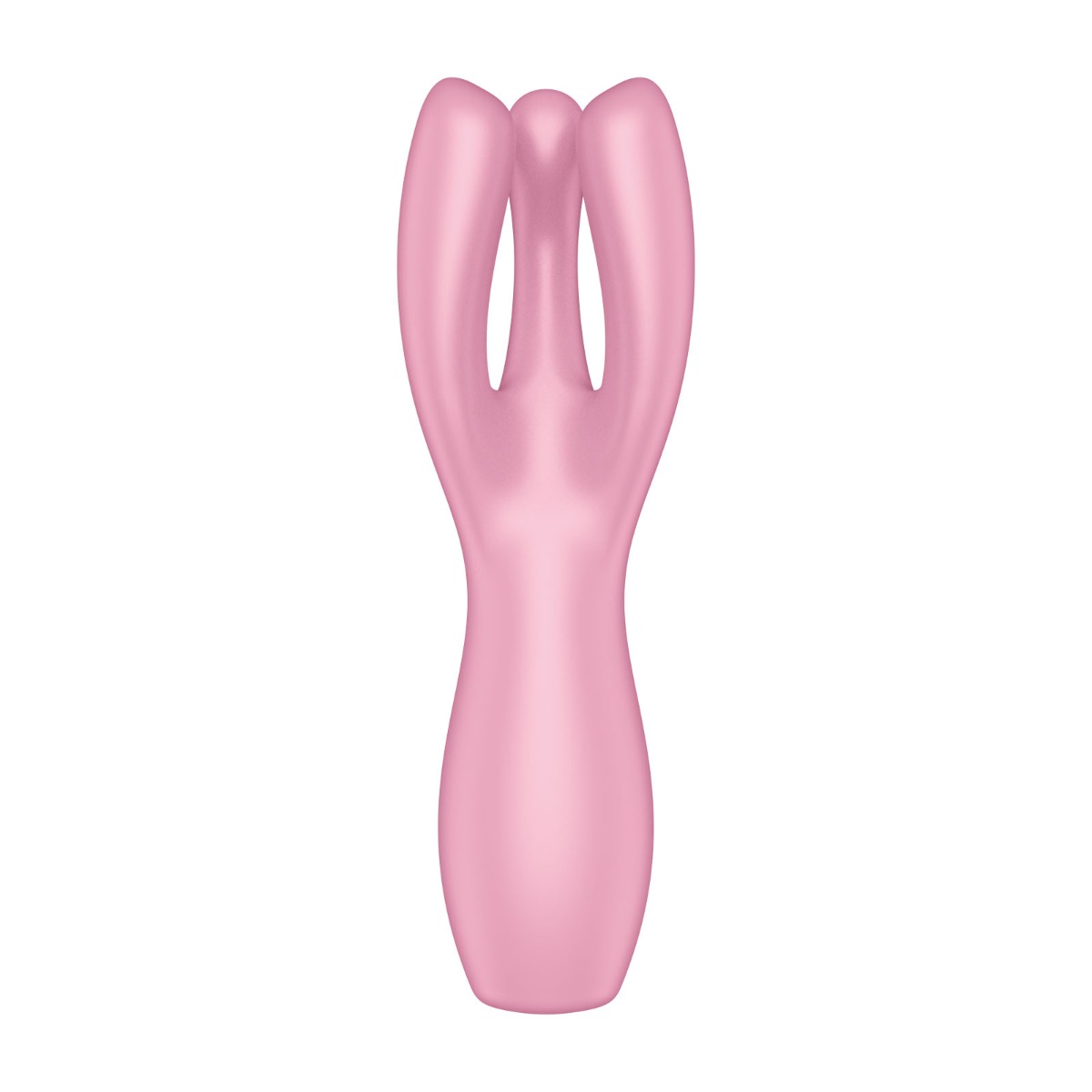 Be the connoisseur of your pleasure! This versatile take on a Lay-on vibrator comes equipped with a firm body and flexible arms for ideal clitoral and labia stimulation. Welcome to Threesome 3 by Satisfyer! Adjust the flexible arms to stimulate multiple different erogenous zones with ease. Experience broad and targeted stimulation with arms built to hit all the right spots! Use the smaller rounded arms for centered stimulation. With 3 powerful motors one located in each arm choose from 12 different vibration programs easily through the intuitive control panel. Use the +/- buttons to control the programs of the outer arms and the ~ to control the middle arm. The Threesome 3 is made of body-safe silicone is rechargeable and waterproof (IPX7). The threesome you never knew you needed